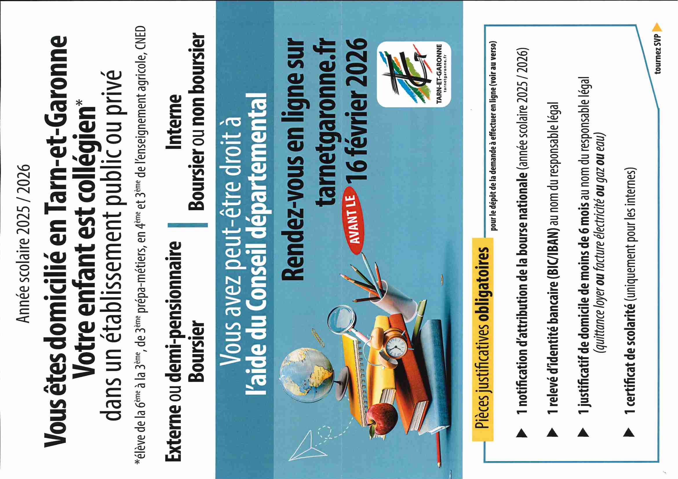 Pour l'année scolaire 2025/2026, le conseil départemental du Tarn-et-Garonne renouvelle l'aide pour les collégiens.