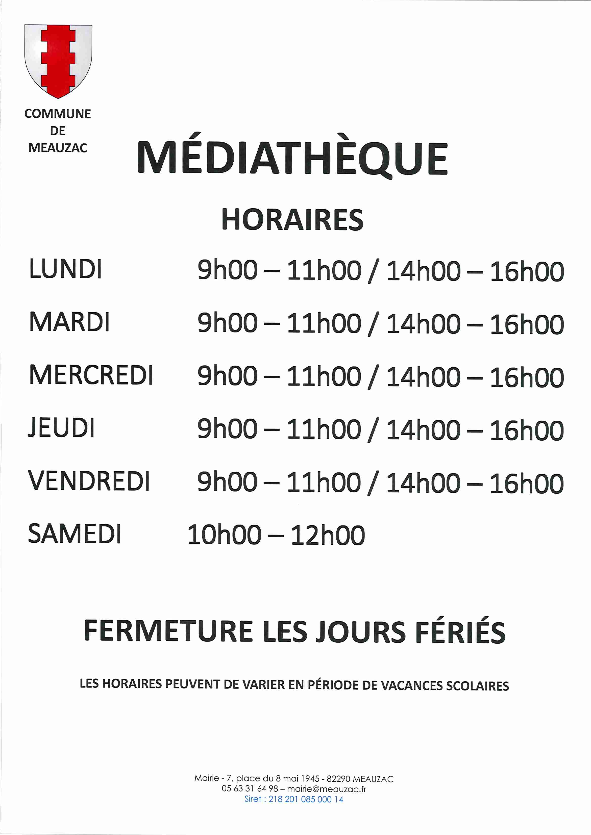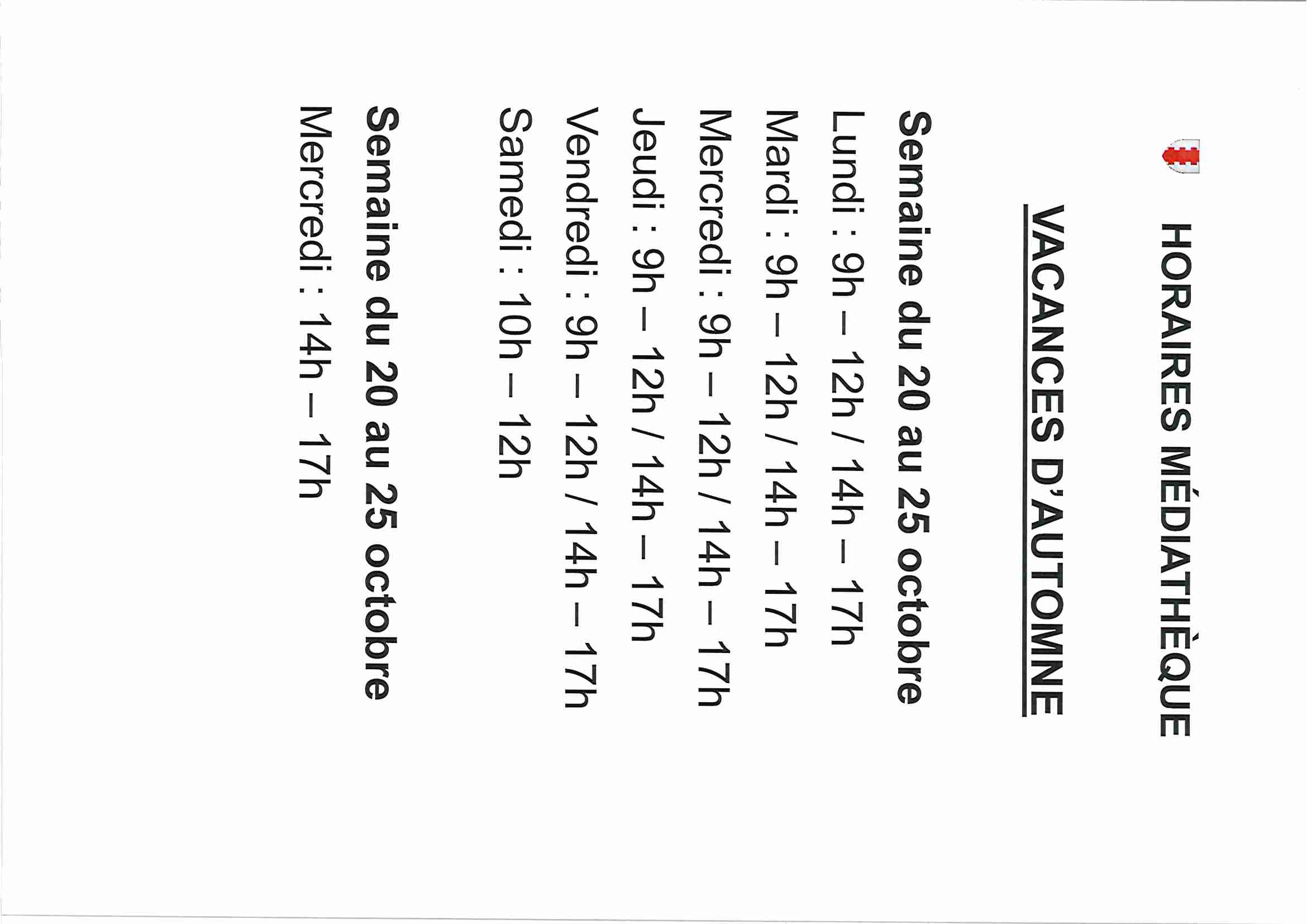 VACANCES D'AUTOMNE : Horaires médiathèque
