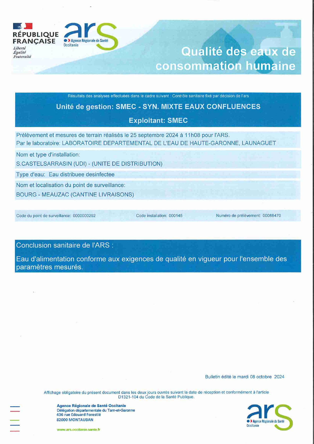 QUALITÉ DE L'EAU À MEAUZAC