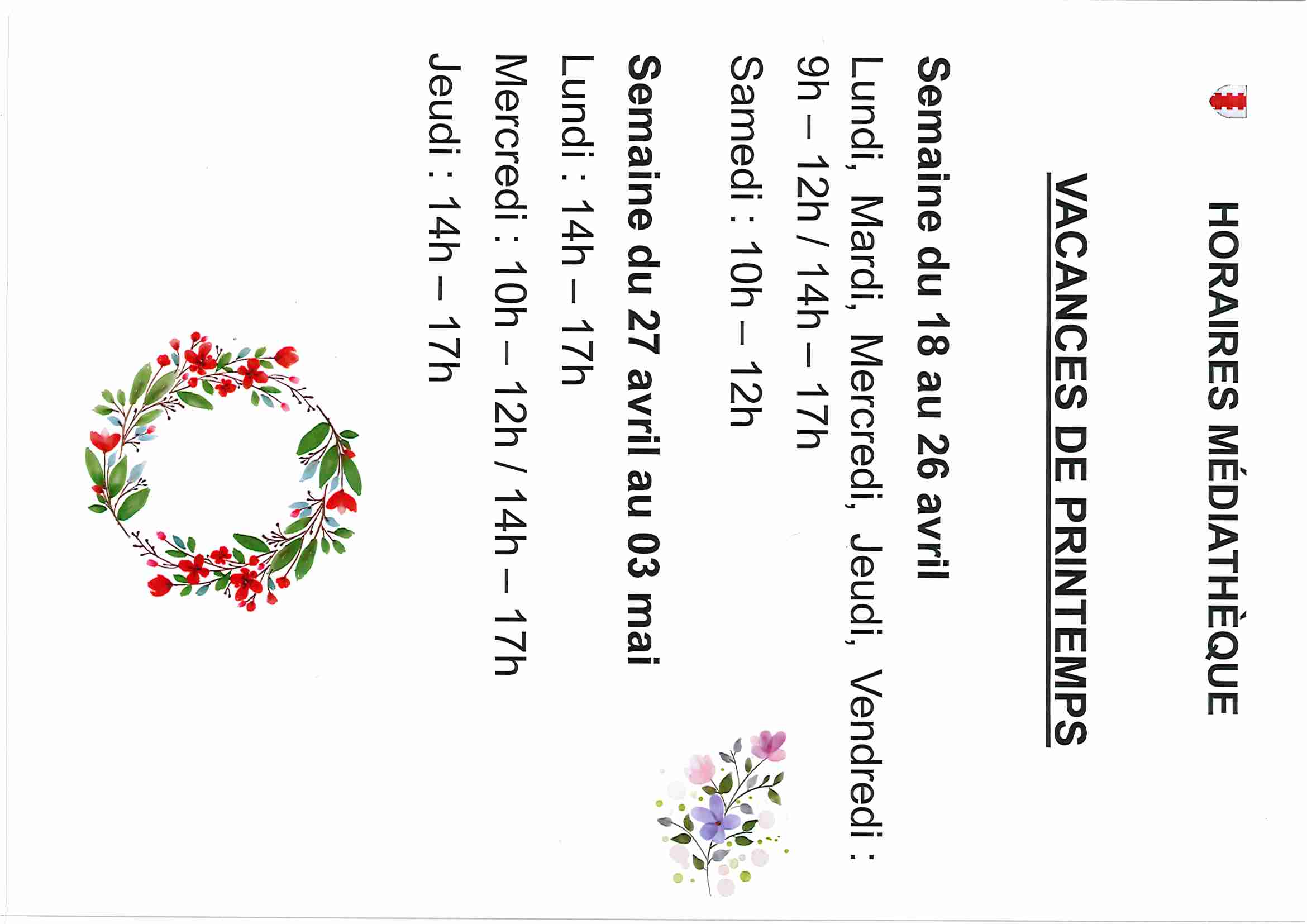 À partir du 07 avril 2026 les horaires de la médiathèque changent.