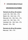 VACANCES D'AUTOMNE : Horaires médiathèque