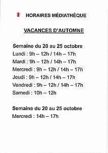 Les horaires de la médiathèque changent durant les vacances d'automne.