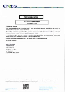 Enedis vous informe d'une coupure de courant pour travaux concernant la commune de MEAUZAC.
