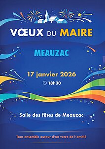 Les voeux de la municipalité se dérouleront à la salle des fêtes le samedi 17 janvier 2026 à 18h30.